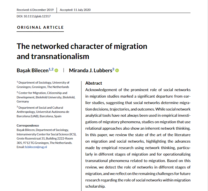 The Networked Character of Migration and Transnationalism. Global Networks, 21, 837–852.