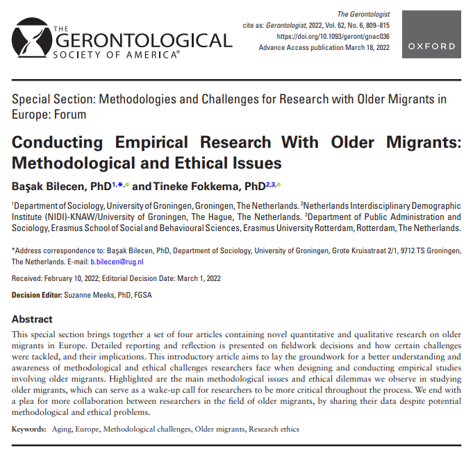 Conducting Empirical Research with Older Migrants: Methodological and Ethical Issues. The Gerontologist, 62(6), 809-815.
